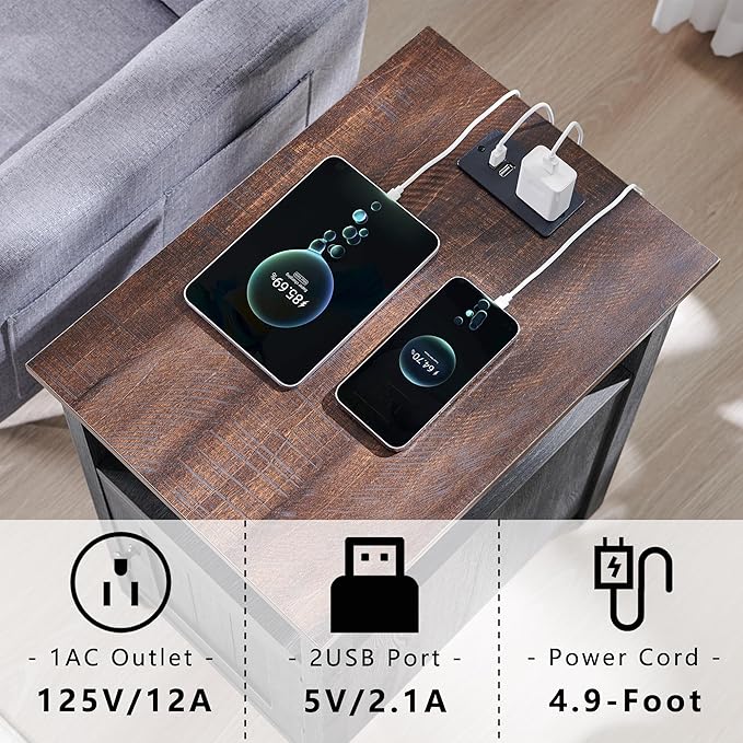 - 【Charging Station】This side table with charging station that will power your smartphone, tablet, desk lamp, and more. Each side table has two USB ports and an AC outlet on the top. Keep your electronic devices charged as well as within reach.