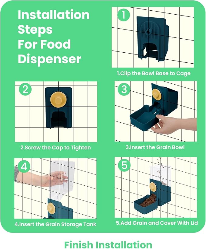 - [Easy Disassembled and Installment] This pet food dispenser is made of high quality plastic, easy detachable for water wash to provide your pet with a tidy eating environment. It is suitable for most small pet cages and very convenient to add food without whole disassembling.