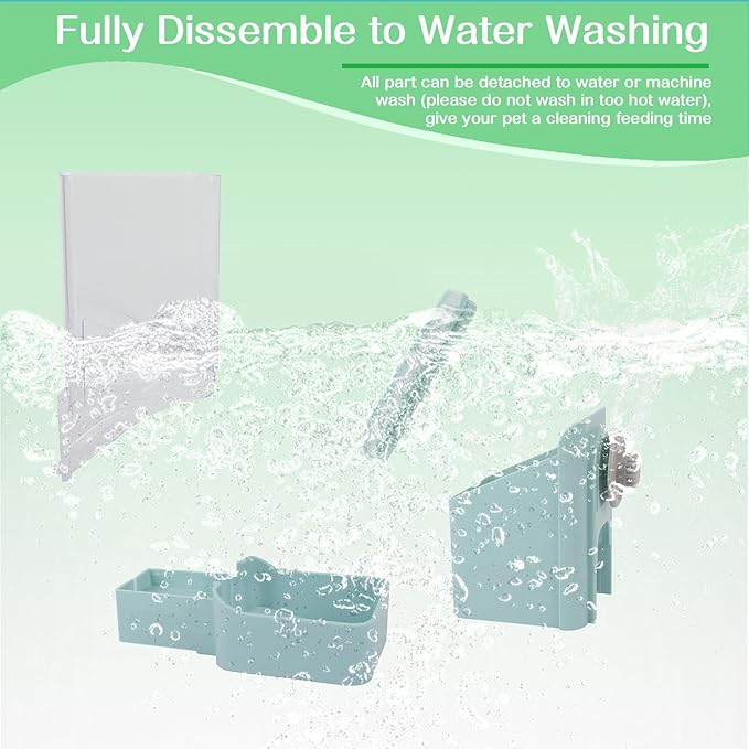 - [Suggest Tips] The size of pet feeder is 8.7x3.9x8.7". Please check your cage spacing before purchasing, the cage wire is recommended to be spaced between 3-6cm(1.2-2.4"). By the way, please do not wash the dispenser in hot water.