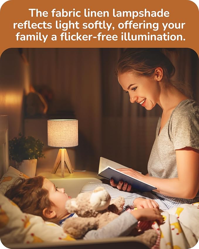 - [Stability & Safety] Featuring a sturdy tripod wooden base, this tripod table lamp for bedroom is built to prevent accidental tipping, ensuring absolute safety during use; the power cord, plug, and switch are all UL certified, meeting national safety standards for your peace of mind