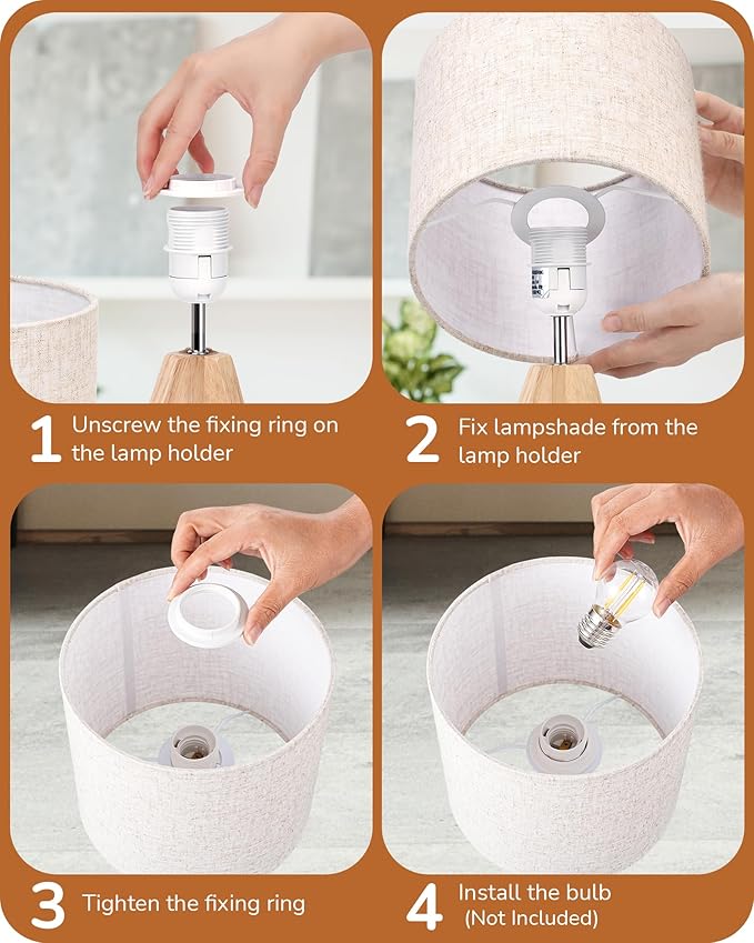 - [Easy Assembly] Setting up this side table lamp is a breeze, taking just minutes, the socket ring securely holds the lampshade in place, and the switch on the power cord allows for easy on/off control; E26 base fits Incandescent/LED/CFL/Halogen Bulb (Bulb not included)