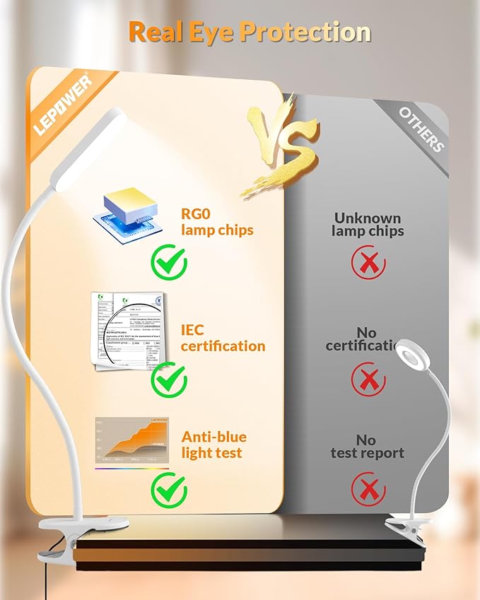 - True Eye-caring: 0 blue light hazard, no flicker, and high CRIβ₯93. Lepower book lights for reading takes care of your eyes during daily use and surely causes no eyestrain or fatigue