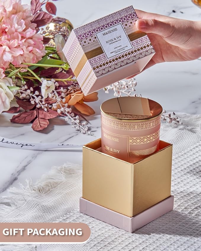 M&SENSE Rose Ivy Candle, Scented Candle Gifts for Women, 45 Hours Slow Burning Natural Soy 7.4oz, Stress Relief Luxury Aromatherapy Candles Home Decor, Christmas Thanksgiving Halloween Gifts for Her