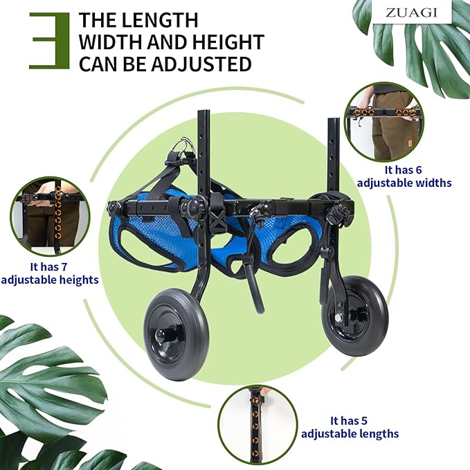 - Product Features:The pet wheelchair is lightweight only weighing 1.6 pounds. Easy to assemble, adjustable height, width as well as length. You can pair it with a leash in case your pet gets lost.