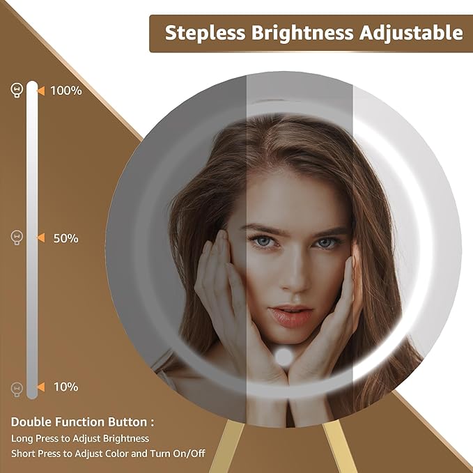 - Vanity Mirror with Lights: Our round mirror with built-in LED lights offers soft, balanced illumination, making it easy to achieve flawless results. Enjoy 3-mode lighting that mimics natural daylight, office and dinning room lighting, helping you feel confident and look your best