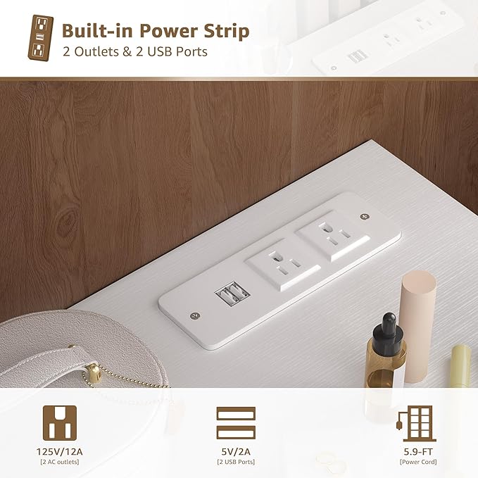 - Stay Powered and Connected: Tired of finding a place to charge your phone or beauty tools? With the built-in charging station, includes 2 standard plug sockets and 2 USB ports, you can easily charge multiple devices, keeping your phone, laptop, or hair tools within reach