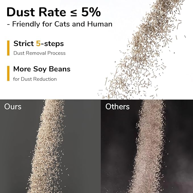 - MUCH LESS DUST: FUKUMARU cat litter is suitable for kittens, ideal for cats and owners who suffer from allergies. With strict 5-step dust removal process and more soybeans for dust reduction, we ensure the powder rate of white tea tofu sand is less than 5%. Effectively protect cats from respiratory and liver problems.