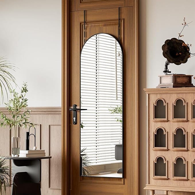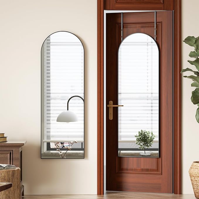 - Perfect Size: 14×48 inch door mirror full length, thin frame design, perfectly reflect to your whole body. This over the door mirror is designed with simplicity and precision, ergonomic mirror seamlessly integrate into living spaces while providing a practical full-body view.