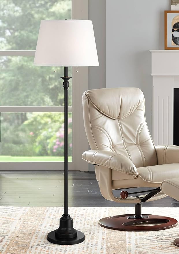 360 Lighting Spenser Traditional 58" Tall Standing Floor Lamp Skinny Pole Pull Chain Satin Black Metal Living Room Bedroom House Reading Office Home Decor Entryway Dining Indoor Family White Shade