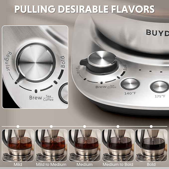 BUYDEEM K176 Tea Maker, Multifunctional Stainless Steel Electric Kettle for Tea and Coffee Brewing, Auto Keep Warm, 5 Flavor Controls, 1.5L