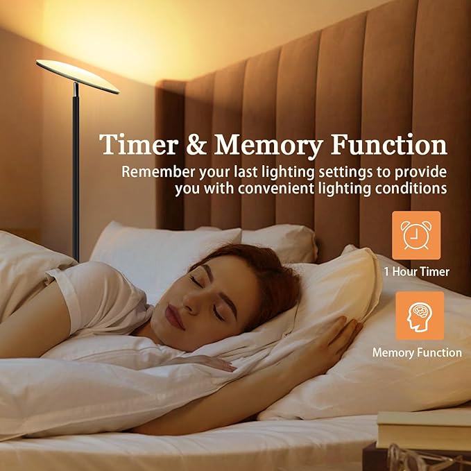 - 【Convenient Control Selection】Control the LED lamp effortlessly within 50ft with its remote. Adjust brightness, switch lighting modes, or set the 1-hour timer—all without leaving your couch! The magnetic remote securely attaches to the tall lamp pole, never lose it. Memory function saves your favorite settings for instant comfort, make this standing lamp a truly user-friendly choice for your home.