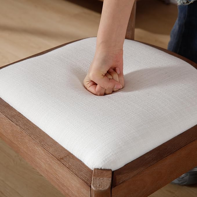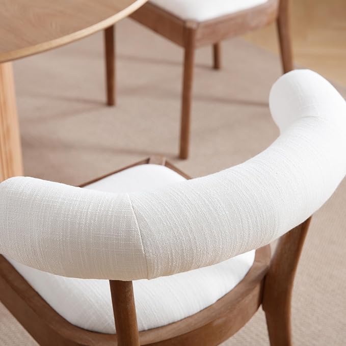 Kmax Dining Room Chairs Mid-Century Modern Fabric Kitchen Chairs with Natural Walnut Finished Frame, Linen Curved Back, Set of 6, White