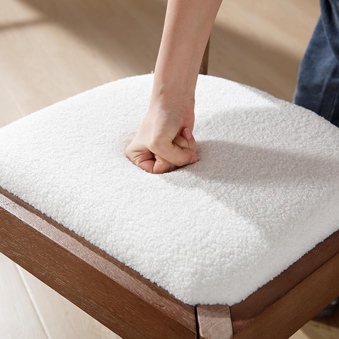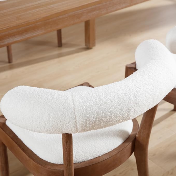 Kmax Dining Room Chairs Mid-Century Modern Sherpa Kitchen Chairs with Natural Walnut Finished Frame, Fur Curved Back, Set of 2, White