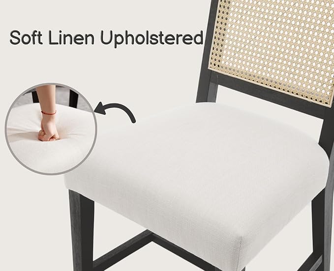 - Mid Century Design Style - The dining room chairs enhance modern design with hand-woven rattan back, high-quality solid wood frame and linen upholstery. The vintage and mid century style of the dining chairs is perfectly matched with different decoration styles to make your dining room more harmonious