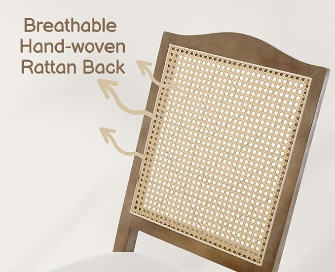 - Hand Woven Rattan Back - The elegant kitchen dining room chairs are designed with a hand-woven rattan back, which is breathable and resilient. The ergonomic high backrest can fit your body, which is comfortable and supports perfectly.