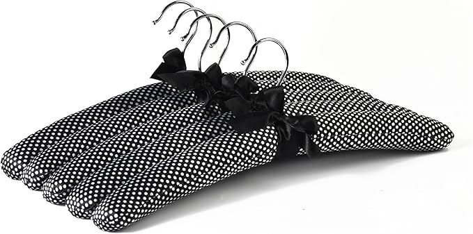 Satin Padded Sweater Hangers Polka Dot, Blouse Hanger with Thick & Soft Foam for Bridal Wedding Dress Lingerie, Smooth Silk Covered Shirt Hanger Without Shoulder Bump (5pcs)