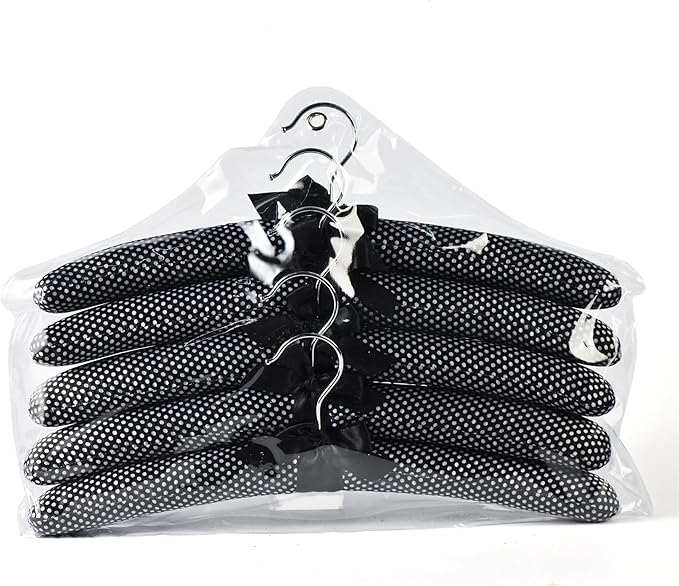 Satin Padded Hangers Polka, Blouse Sweater Hanger with Thick & Soft Foam for Bridal Wedding Dress Lingerie, Smooth Silk Covered Shirt Hanger Without Shoulder Bump (10)