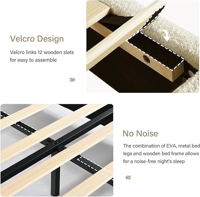 - 【Fluffy Boucle Fabric】The cream-colored twin bed frame is upholstered in a cloud-like terry fabric that is soft to the touch while providing a fluffy texture. Boucle fabric all-over fabric cover for bold style, filling your home with warmth and calm so you can sleep in style