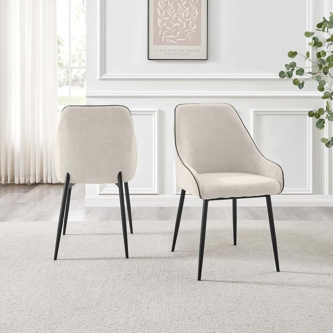 - MODERN CREAM FABRIC DINING CHAIRS: Our 2x Beaumont cream fabric dining chairs with black legs are a stylish modern seat for any modern dining room, featuring a squared bucket shape with arms that will hug you.