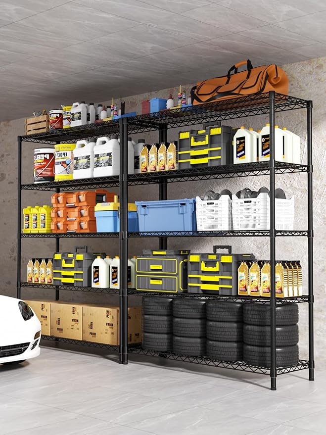 5 Tier Adjustable Storage Shelves Heavy Duty Metal Utility Shelf 1750LBS Capacity Wire Shelving Unit Organizer Rack for Home Kitchen Garage Pantry Room 18" D x 46" W x 77" H Black