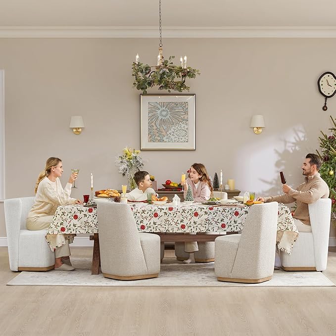 CHITA Upholstered Rolling Dining Chair on Casters Set of 2, FSC Certified Modern Fabric Dining Chair with Casters, Boucle Dining Chairs for Reading Room Waiting Room Kitchen Dining Room, Oatmeal