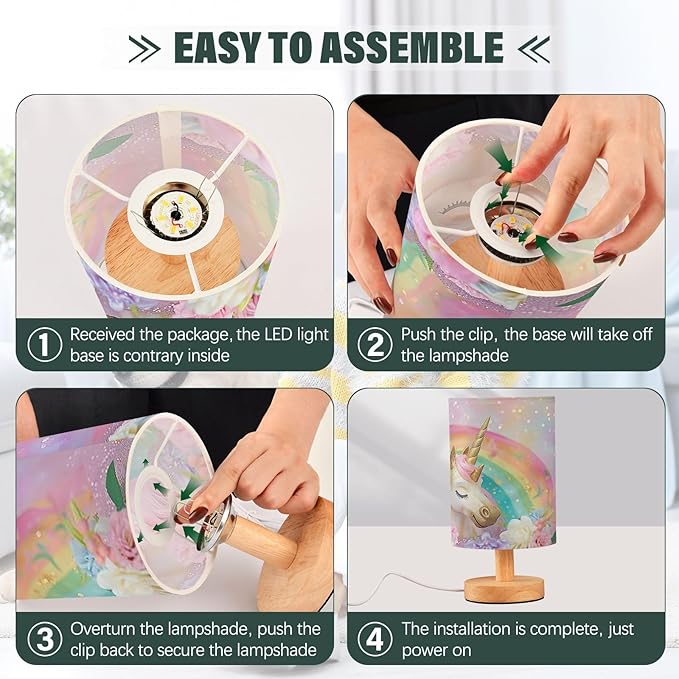 - ❤【Easy to Install】When you receive the bedside lamp, the lamp holder and lampshade are opposite. You need to press the center buckle to separate the lamp holder and lampshade, then flip the lampshade, and then press the center buckle to install it into the ring,last, connect the USB connector Use the push button switch to control the power supply.
