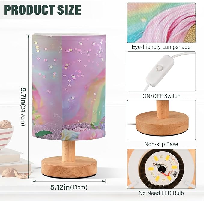 Bedside Lamp Pink Unicorn Cute Table Lamp with USB Port Wood Base for Living Room,Bedroom,Nightstand 214B5433