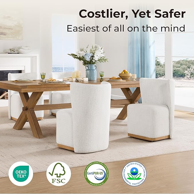 CHITA Upholstered Rolling Dining Chair on Casters Set of 2, FSC Certified Modern Fabric Dining Chair with Casters, Boucle Dining Chairs for Reading Room Kitchen Dining Room, Pearl