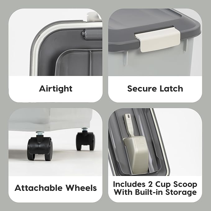 - EASY MOBILITY: Includes attachable wheels, allowing you to move the storage bin effortlessly. Place it on a shelf or roll it from the storage area to your pet's bowl for added convenience.
