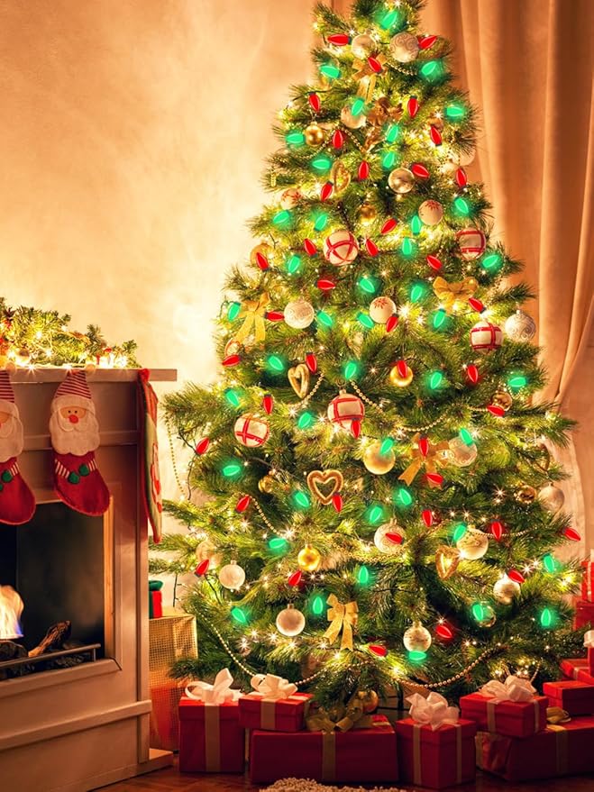 - Christmas Decorations: C7 traditional vintage Christmas lights bring you back to your childhood memories, perfect for Xmas, holiday, patio, roofline, front door decor