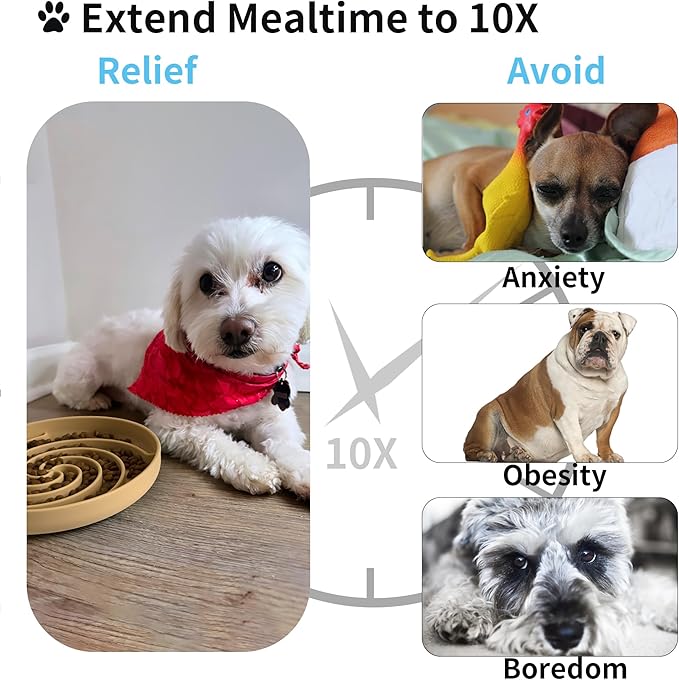 - Mental Stimulation for Your Dog: With our slow feeder dog bowls, which are made to stimulate your dog's mind while they struggle for their food, you can turn mealtime into an entertaining and interesting activity. Additionally, it can be used as a lick mat to reduce nervousness