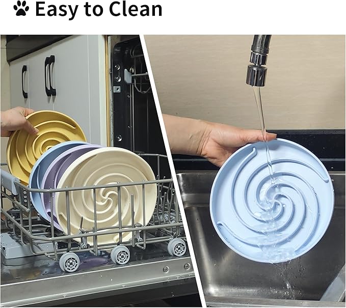 - Easy to Clean: Cleaning silicone slow feeder dog bowls is simple; you can either rinse them with water or put them in the dishwasher. Their smooth surfaces make it difficult for food residue and greaand qrease to accumulate, which sianifcantly lessens the cleaning load on pet owners and ensures that their pets are fed sanitary and clean food
