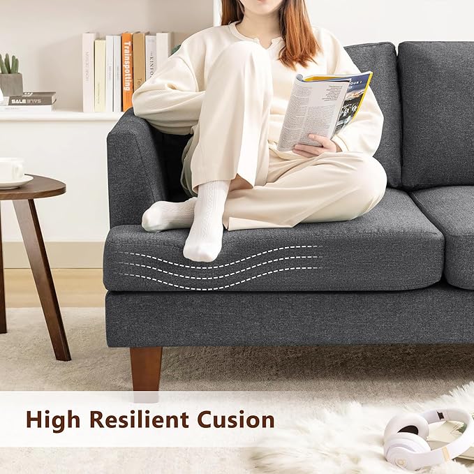 3 Seater Sofa Couch with Deep Seats, 89" Mid Century Modern Upholstered Sofa with Armrests, Comfy Couches for Living Room, Bedroom, Apartment and Office (Dark Grey)