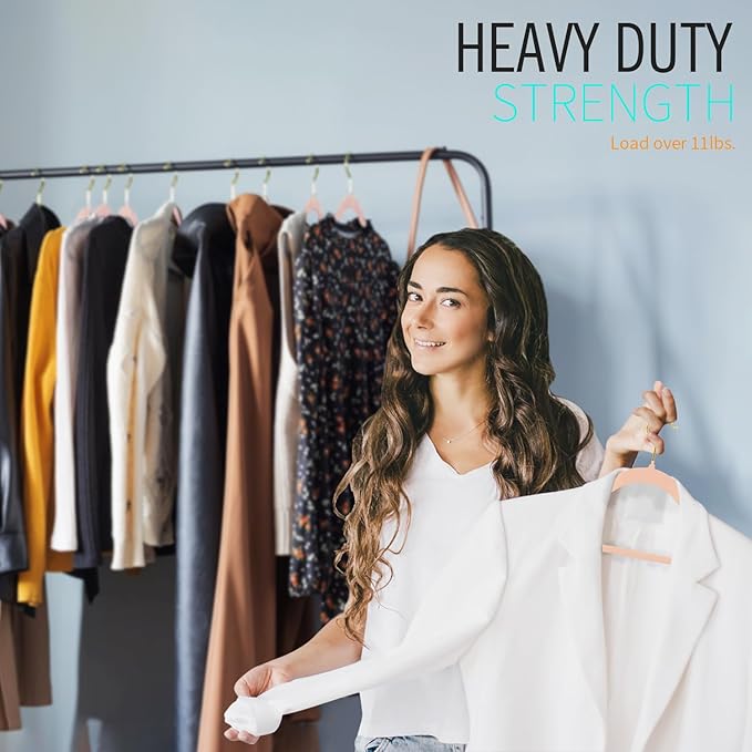 - [Sturdy Space Saver]: Ultra thin design to maximize the closet space and helps your closet add more extra room to hang more clothes. And the sturdy material can hold up to 11 pounds, it is idea for student dorms/small rooms/tight closets.