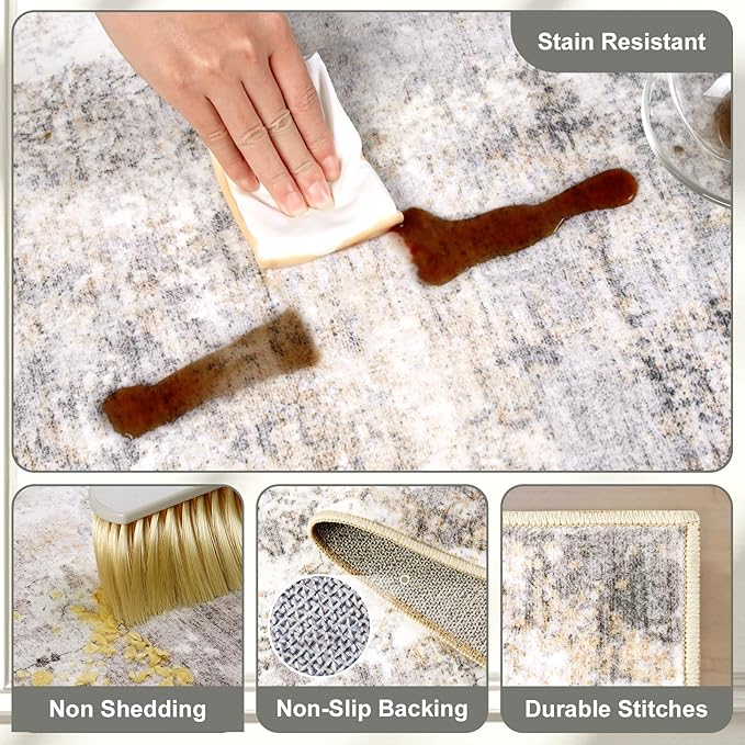 - Neutral Abstract Design: Add a touch of contemporary flair to any space with abstract design of this rug, the neutral colors complement various decor styles, making it perfect for living room, bedroom, dining room, home office, nursery room, and more