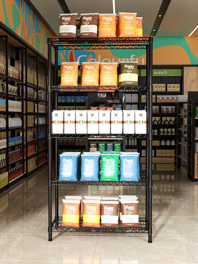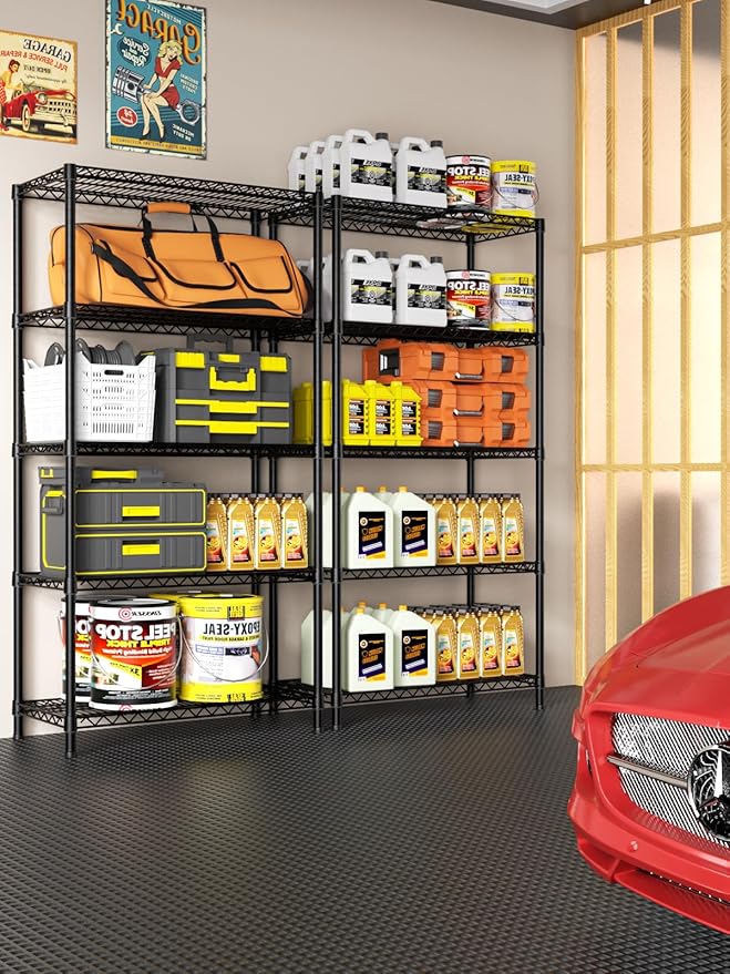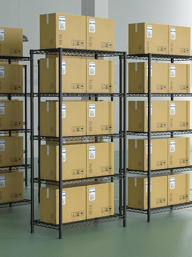 5 Tier Heavy Duty Adjustable Storage Shelf Organizer Storage Metal Shelves Garage Wire Shelving Unit Pantry Rack 18" D x 36" W x 71.25" H,Black