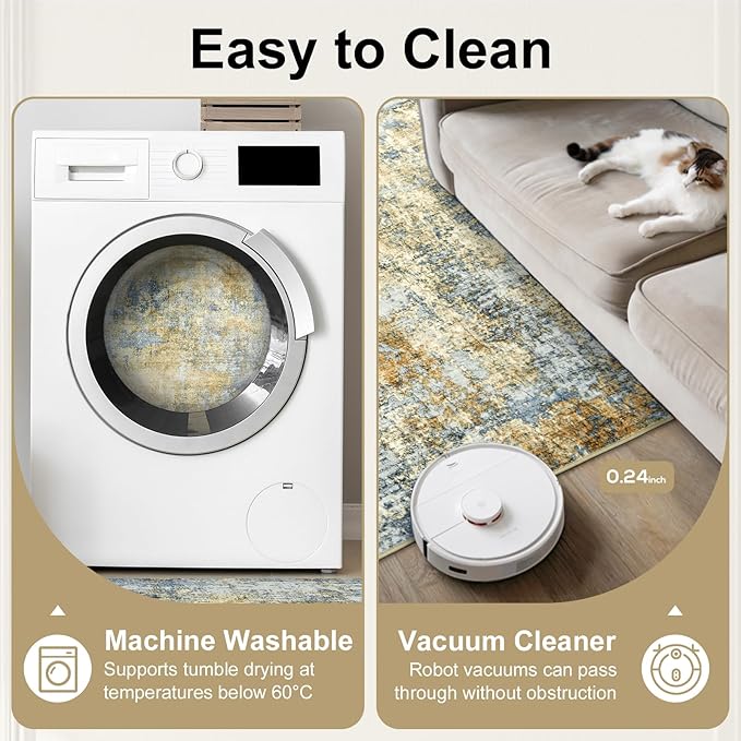 - Washable Area Rugs: With a thickness of 0.24”(0.6cm) easily fold or roll for storage and machine washable, The added bonus of it being machine washable makes it a easy to clean or maintain and saves you time