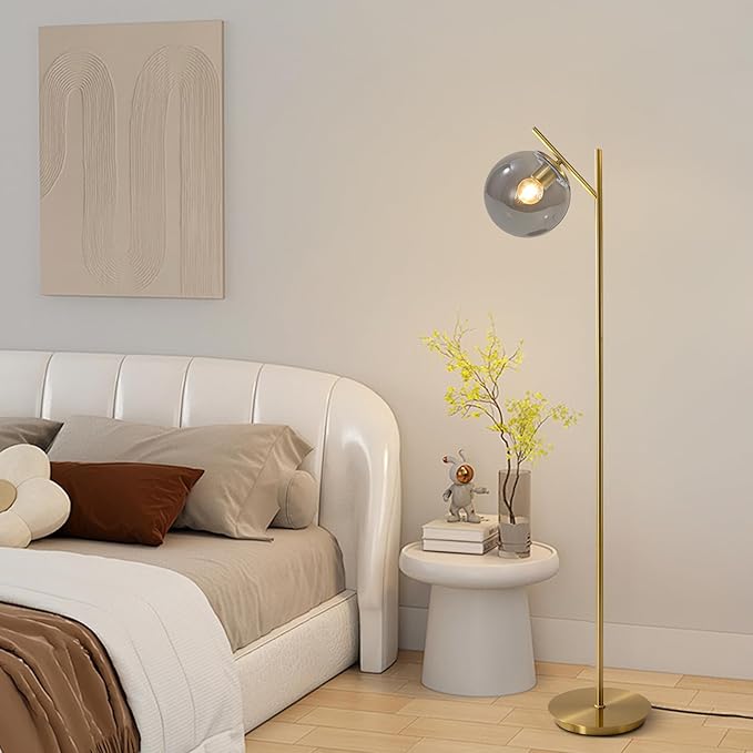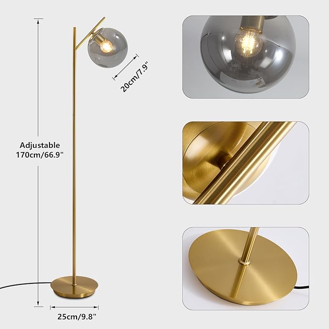 - 【Safe Design】This floor lamp is designed with the user's safety in mind. Featuring a stable base and textured metal pole, the smoky gray sphere floor lamp provides excellent stability and is less likely to wobble or tip over when struck by a pet or if you inadvertently bump it. The convenient foot switch allows you to turn the light on or off with a light touch of your foot and comes with a UL plug.