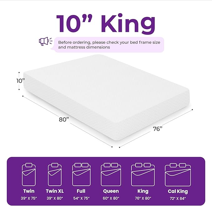 GAESTE 10 Inch King Cooling Gel Memory Foam Medium Firm Mattress Breathable Pressure Relief CertiPUR-US Certified Foam, Mattress-in-a-Box for Kids and Adults No Fiberglass (King, 10 in)