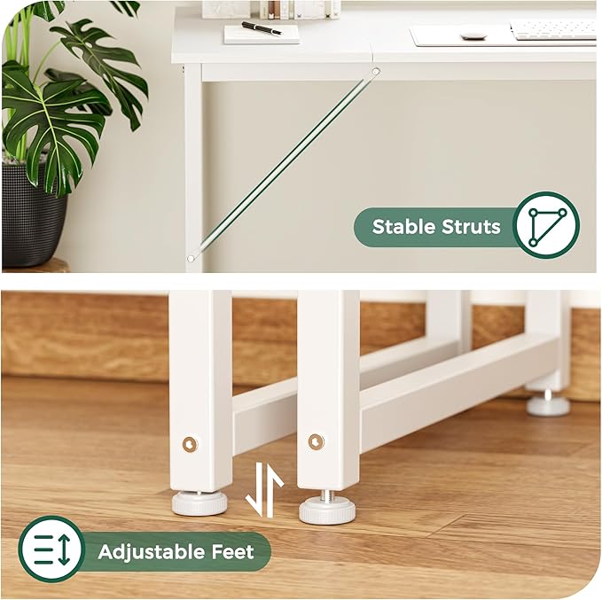 - 【Long Desk】Seek a desk with ample room to spread out? This sleek white desk with a wide desktop - 78.7''x23.6'' offers the perfect solution for your study, kid's room, or home office. With plentiful storage space, it easily holds your computer, calendar, lamp, and other essentials, leaving you with plenty of space to tackle your tasks with ease
