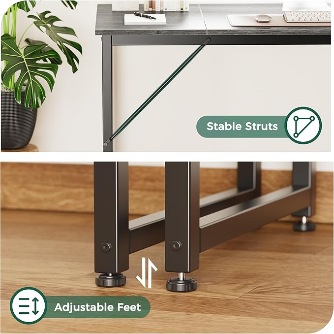 - 【Reinforced Structure】Crafted from durable particleboard and thick steel tubes, this work from home desk offers a stable and sturdy structure. Reinforcement struts beneath the tabletop provide additional stability, ensuring its longevity for working or gaming