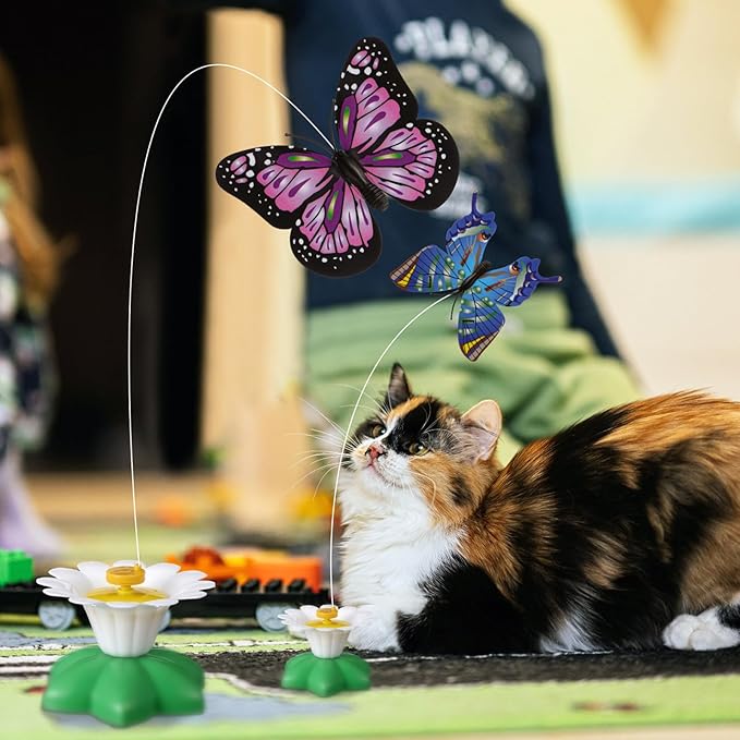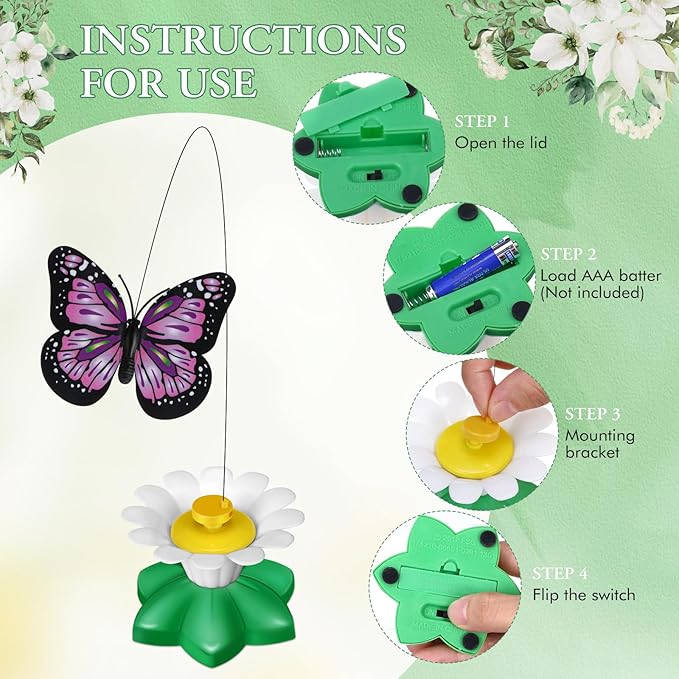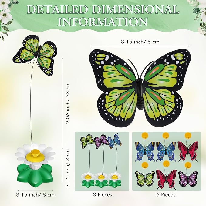 - Comprehensive Play Package: this electric teasing cat toy package includes 3 electric butterfly teasing toys and 6 additional butterfly heads with a wire; 1 x AAA battery is needed (not included); The kit is easy to install, which allows you to either set them stationary or use them as hand held play items; These nice play companions keep your cat entertained, relieving anxiety, stress, and boredom