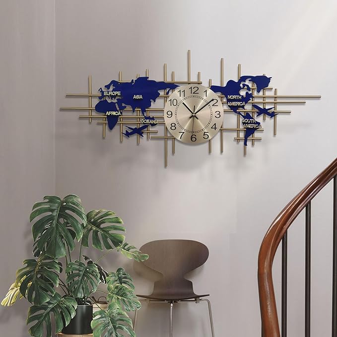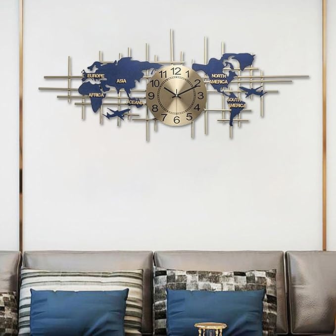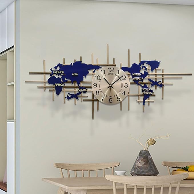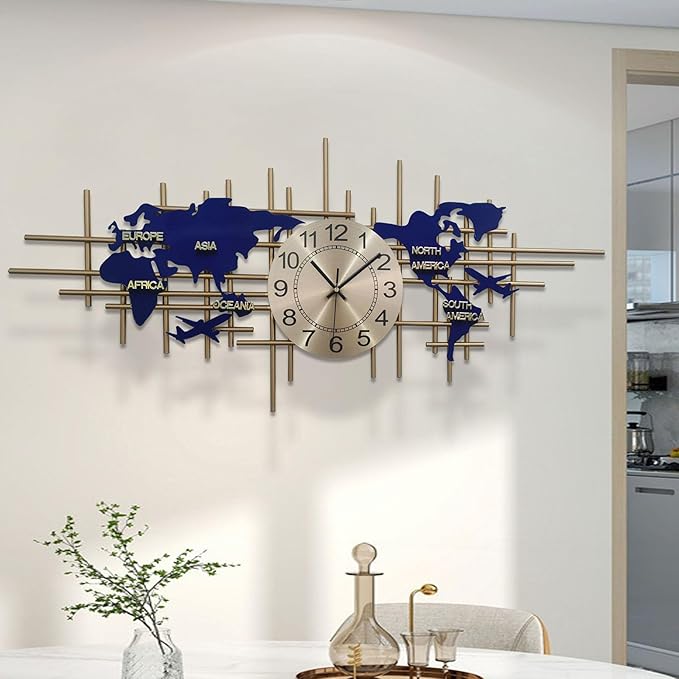 37.8 Inch Modern World Map Wall Clock, Silent Quartz 3D Design, Large Handmade Iron Frameless Decorative Clock for Living Room, Bedroom, Kitchen, Office (Large)
