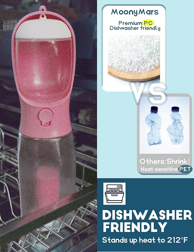 - Dishwasher friendly: crafted from food-grade ABS+PC, BPA-free, our dog water bottle withstands 212β/100β, dishwasher-friendly. Perfect for dog walks, travel & trips, picnics, camping, hikes, or any pet-parenting adventure.