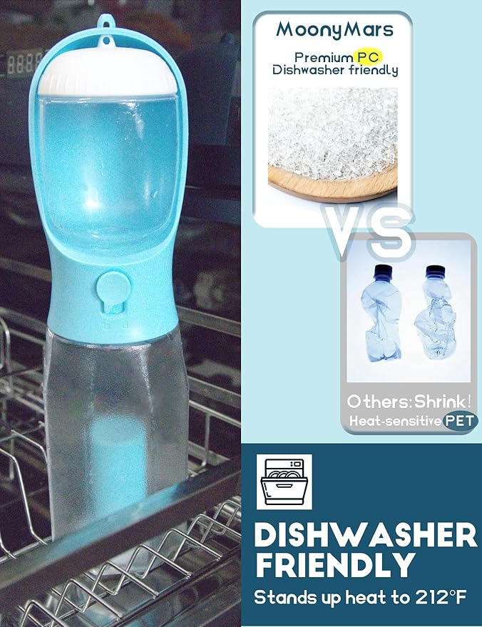 - Dishwasher friendly: crafted from food-grade ABS+PC, BPA-free, our dog water bottle withstands 212 β/100 β, dishwasher-friendly. Perfect for dog walks, travel & trips, picnics, camping, hikes, or any pet-parenting adventure