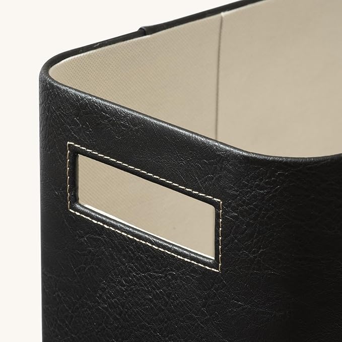 - PREMIUM VEGAN LEATHER STORAGE BINS SET: Crafted from top-tier Carbon Black vegan leather, this set of two stylish organizers offers a flexible storage solution for your home