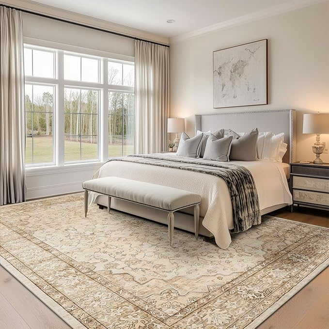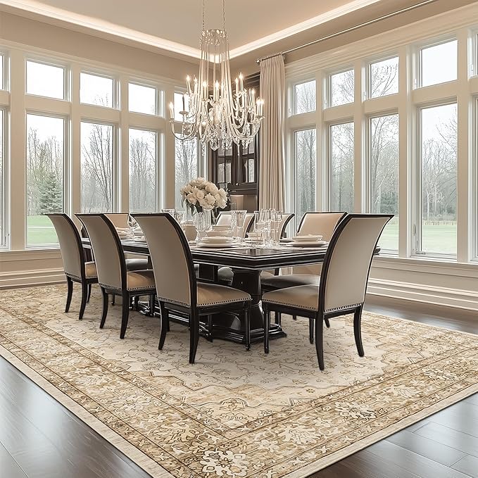 10x14 Area Rugs for Large Living Room Washable Soft Boho Vintage Floral Stain Resistant Indoor Floor Carpet Rug Low Pile Accent Rugs for Bedroom Family Room Nursery Dorm Office Dining Room,Beige