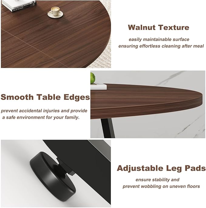 - 【ROUND DINING TABLE SIZE】: The walnut dining table Product Overall Dimensions: 51.2 "L*51.2 "W*29.53 "H.A crisscrossed heavy-duty metal frame makes the table very stable and beautiful, working in a variety of aesthetics from rustic to contemporary.The coffee table has a rounded silhouette that allows four to six people to gather comfortably.