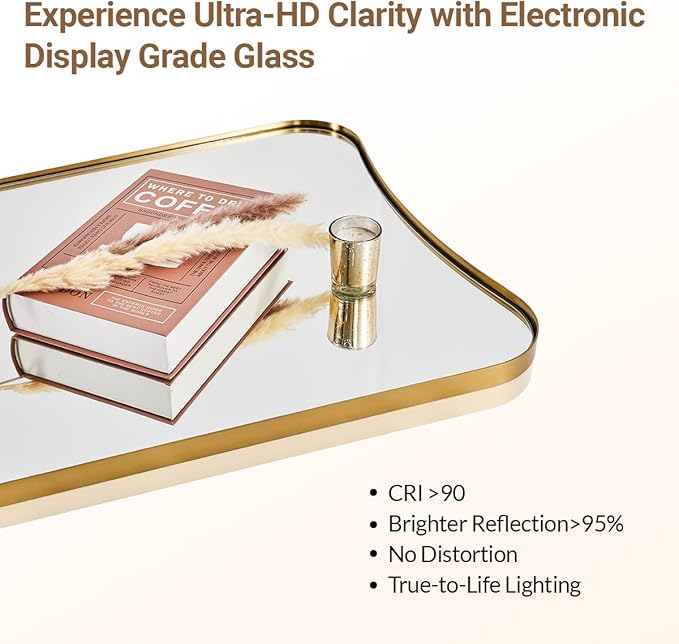 - 【High-Definition Clarity】: This gold frame mirror features a crystal-clear reflection using high-quality silver glass, offering true-to-life images without distortion. The robust construction of our antique brass mirror ensures its longevity, while the easy-to-clean surface keeps your reflection pristine