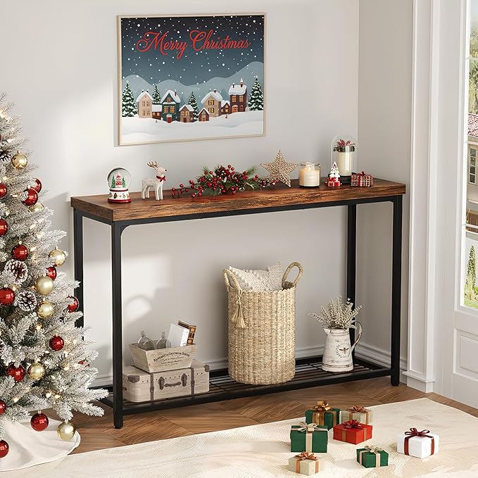 - 2-Tier Storage Space: This narrow console table with heavy-duty tabletop and 1 tier mesh shelves, providing ample storage for decor items, vases, frames, keys, and more. This organized storage keeps entryways tidy and visually appealing